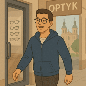 Kilka dni później wrócił po odbiór okularów. Wyszedł z salonu uśmiechnięty, mówiąc: