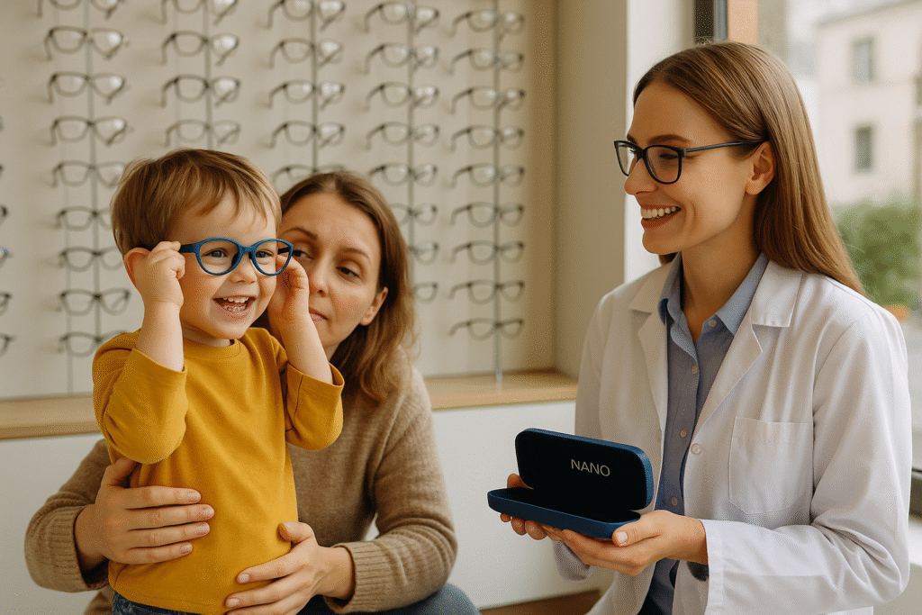 Do salonu na Koziej, przyjechała mama z 3-letnim synkiem aż ze Świdnika. Szukali nowych okularów — konkretnie marki Nano. Chłopiec był radosny, ciekawski, co chwila coś dotykał i dopytywał. Mama z kolei wyglądała na nieco zmęczoną, ale zdeterminowaną.