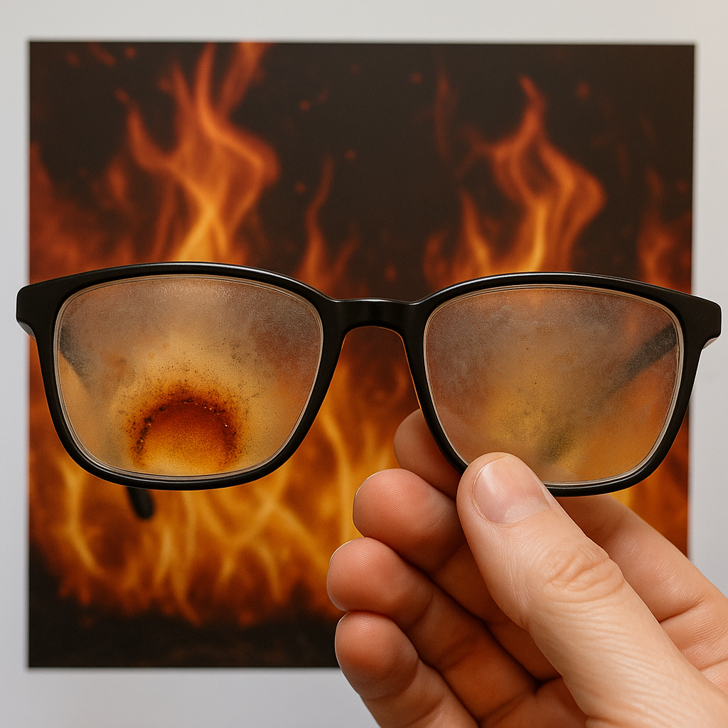 Morał: Nawet najlepsze okulary nie wytrzymają wszystkiego. Wysoka temperatura potrafi je zniszczyć szybciej, niż się wydaje — dlatego warto wiedzieć, jak je chronić. A po trzech latach i tak czas na nowe spojrzenie — dosłownie i w przenośni.