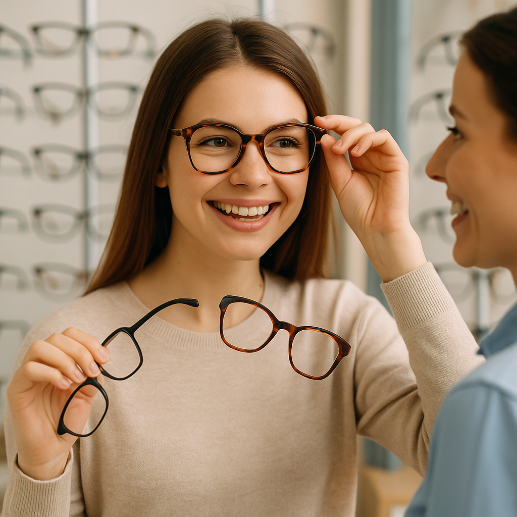 Szkła zostały przełożone, a nowa oprawa nie tylko uratowała sytuację, ale dodała jej twarzy blasku i koloru — idealnie na nadchodzącą wiosnę.